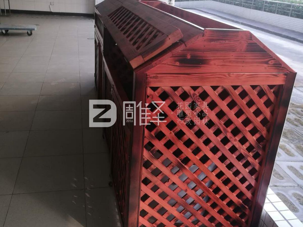 广东珠海九中垃圾桶防腐木罩子花箱二合一