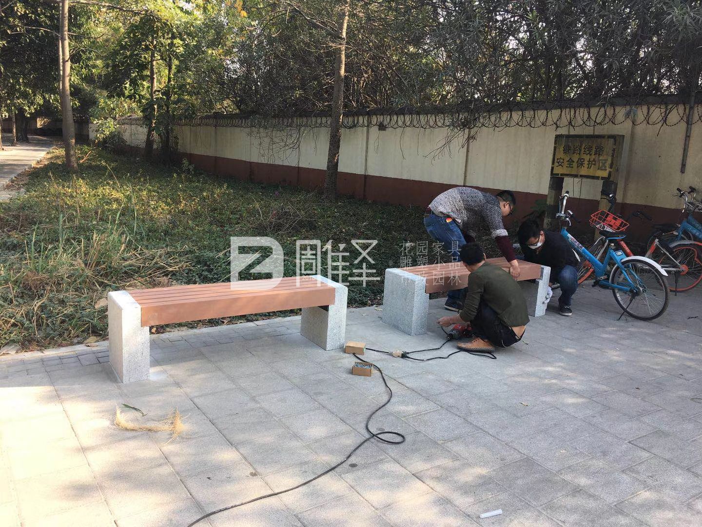 广州万盛广场塑木户外花园家具围树椅